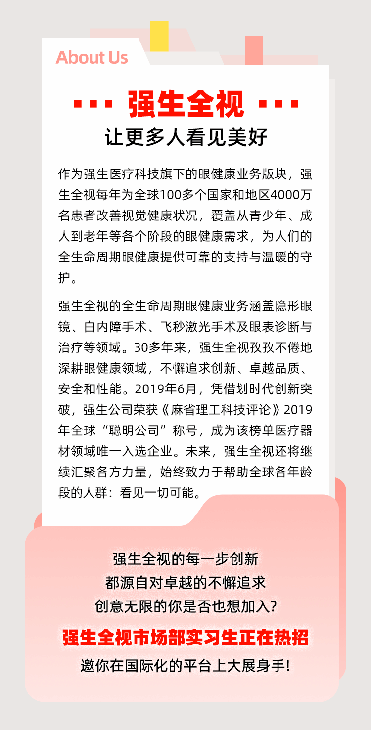 实习招募 | 强生全视实习生热招ING!