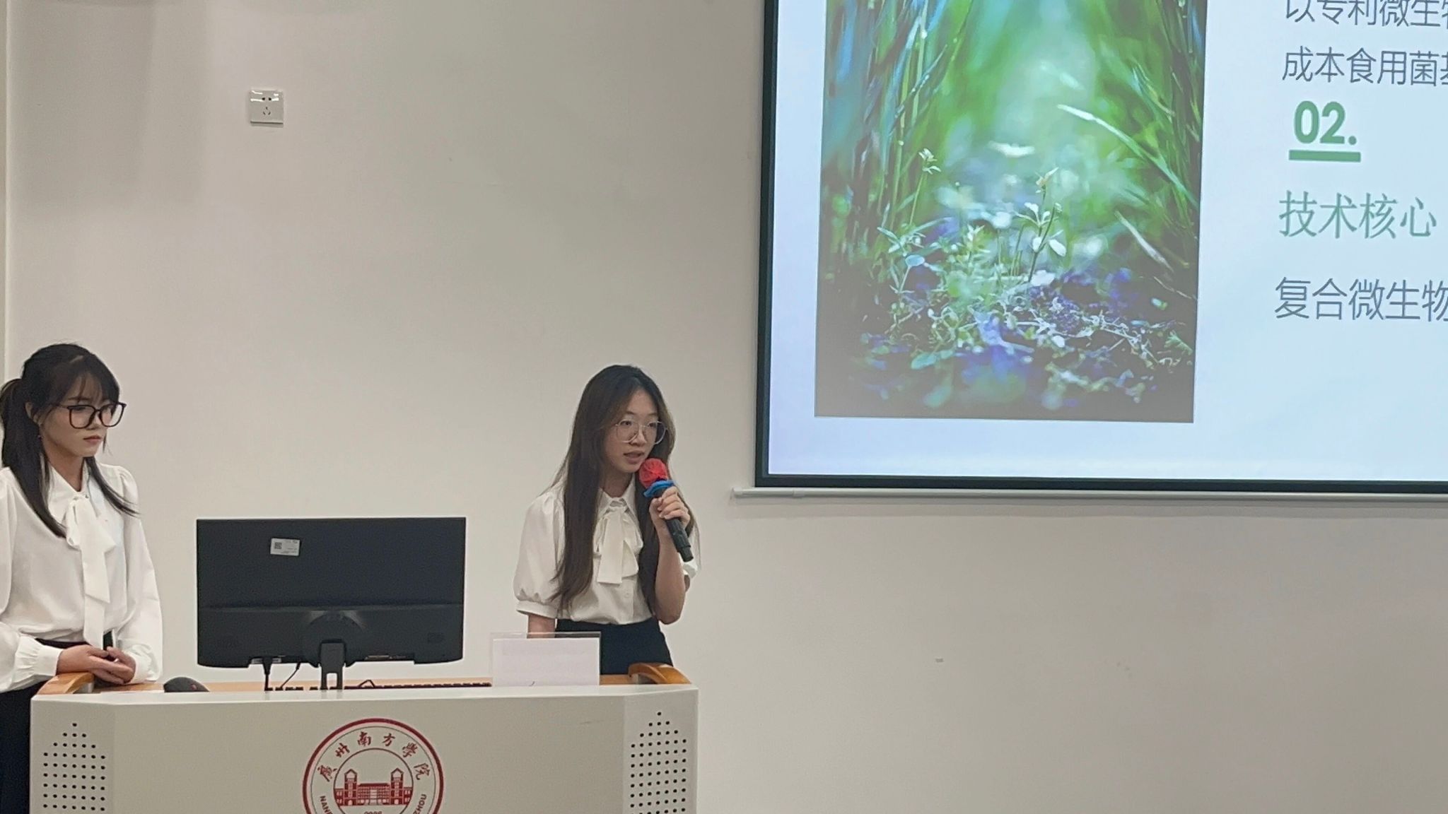 林子琪小组针对中药废渣污染与菌类生产需求,提出“菌药共生”资源化利用方案,实现对中药渣的高效循环利用,兼具环保价值与经济潜力。