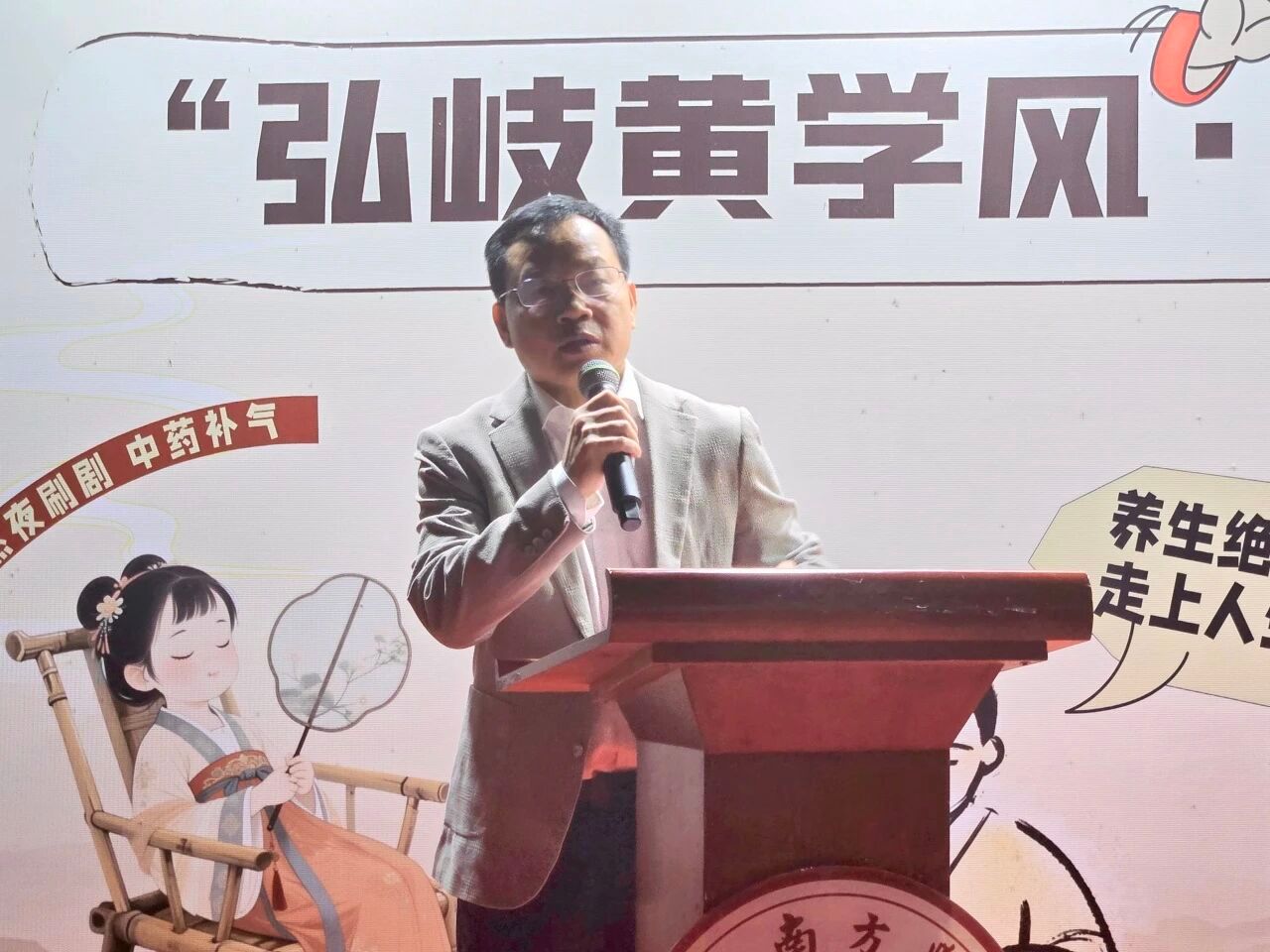 杨双华副校长致开幕辞。他指出,中医药作为古代科学瑰宝,具有深邃智慧与当代价值。举办“岐黄夜市”是生动展示文化、践行办学理念的重要举措。他寄语学子们要努力成为中医药文化的传承者与创新者,为事业发展贡献力量。