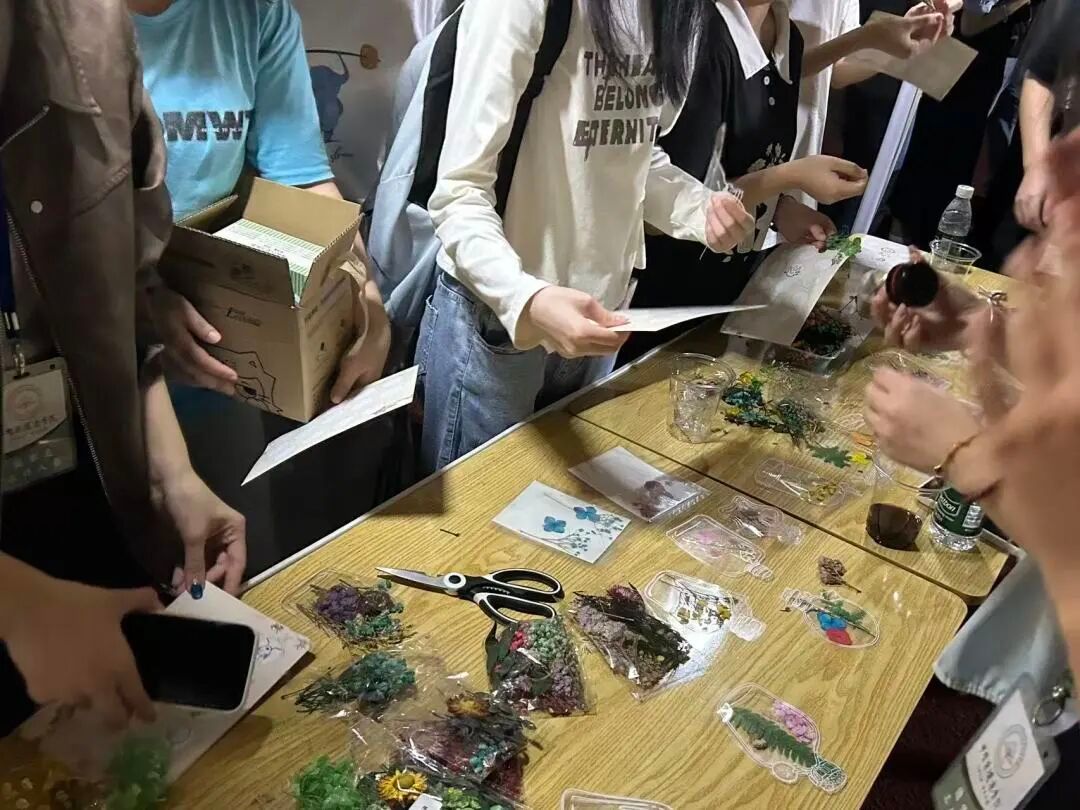 在本草文创区,DIY中药香囊、创意发夹、精美团扇和书签等手工活动吸引了大量“手工爱好者”。大家亲手挑选药材,制作香囊;或在扇面、书签上绘制自己喜欢的图案,将一味味本草化为可触、可感、可携带的文创作品。这一刻,中医药文化不再是书本上的知识,而是可以亲手创造、带回家中的美好记忆。