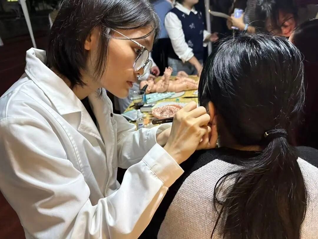 经络穴位体验区充满了好奇与探索的氛围。精致的经络模型前,同学们亲手触摸,寻找准确的穴位,聆听讲解,不时发出惊叹。通过这种直观的互动,抽象难懂的经络学说变得生动可感,大家深切体会到了中医诊断与治疗的精妙所在。