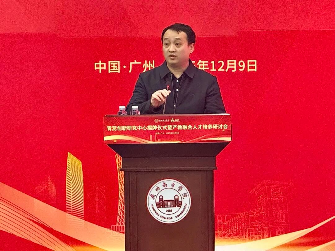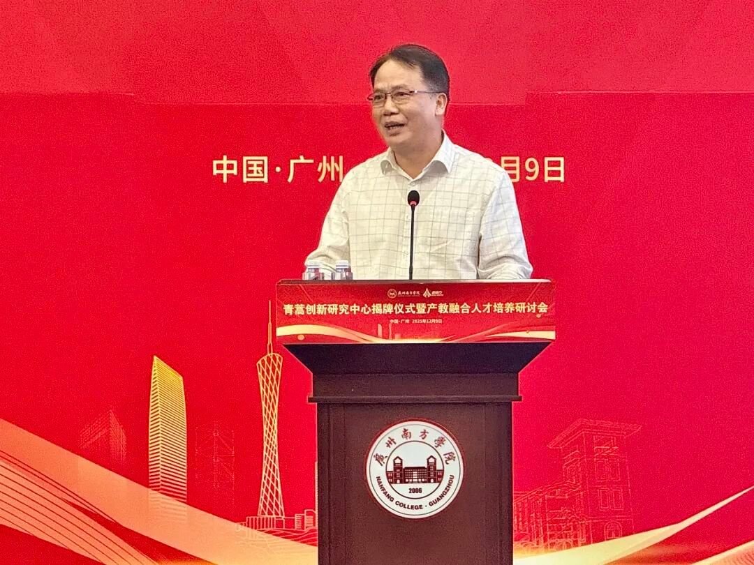 2025年12月9日下午,广州南方学院青蒿创新研究中心揭牌仪式暨产教融合人才培养研讨会在学校教研楼B1-103顺利举行。学校医学部专家委员会主任、广州医科大学原校长王新华教授、从化区卫健局张科副局长、广东新南方集团董事长朱拉伊先生等嘉宾到场祝贺;学校汤涛校长、杨双华副校长、龚鸣副校长等学校领导及职能部门负责人参加揭牌仪式。揭牌仪式由学院常务副院长王玉平副教授主持。