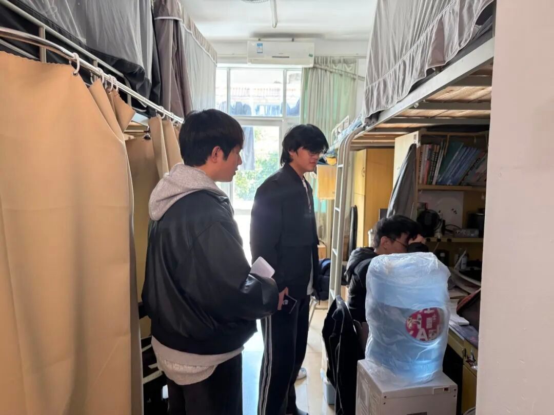 在关怀的同时,安全检查亦是本次走寝的重要一环。老师们对宿舍用电安全进行了重点排查,提醒大家严禁使用违规电器,不私拉乱接电线,做到人离电断。同时,也提醒同学们妥善保管个人贵重物品,离宿时锁好门窗,共同维护安全、整洁、和谐的宿舍环境。