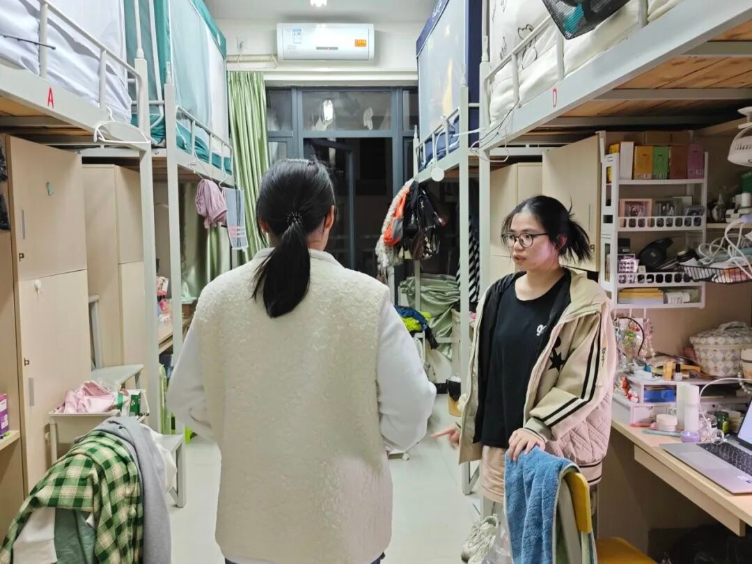 本次走寝行动紧密围绕期末迎考阶段学生的实际需求展开,旨在将学院的温馨提醒与专业关怀送达每一位学子。
