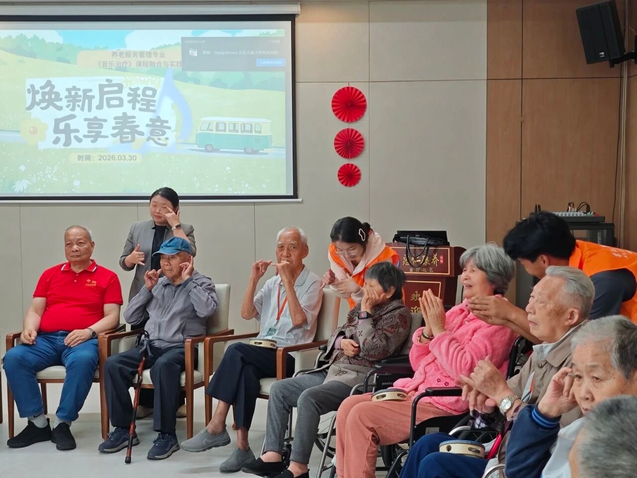 为深入推进养老服务管理专业课程与运用场景融合改革,探索“课堂与真实场景融合、学习即实践”的人才培养路径,3月30日下午,学院将《音乐治疗》课程结合真实养老服务场景,通过开展现场教学,实现课程内容与养老行业岗位能力要求的精准对接。